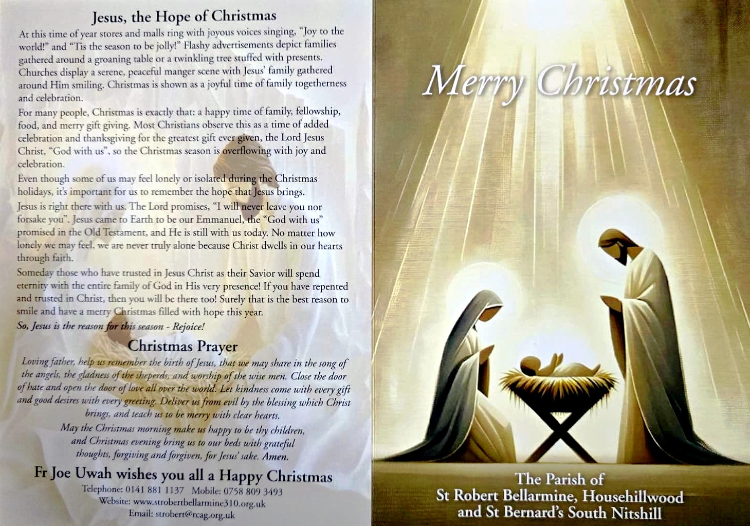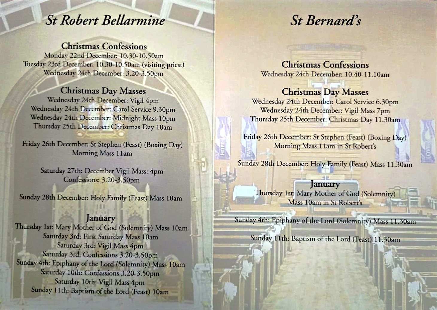 The Parish bulletin is available and can be picked up at the rear of the church as you leave. If you wish you can view it on-line under the bulletin option at the top of the page, previous bulletins can also be found in the archive section on the bulletin pick list.